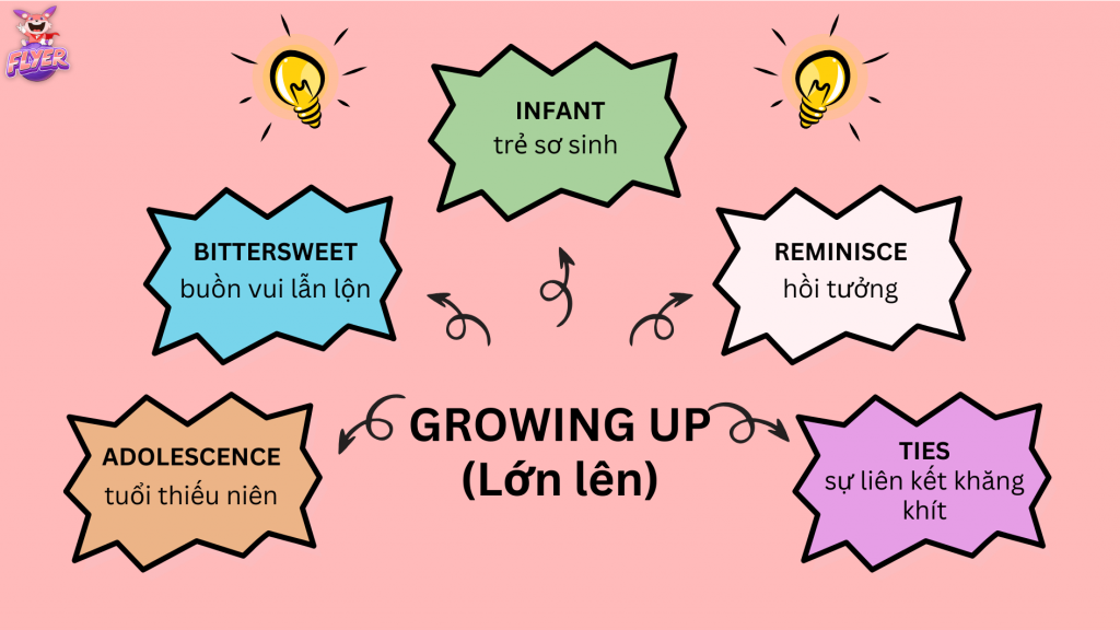 | mature | adj, n | /məˈʧʊr/ | trưởng thànhngười trưởng thành | Being a mature one is very hard. Làm một người trưởng thành thật khó khăn. |