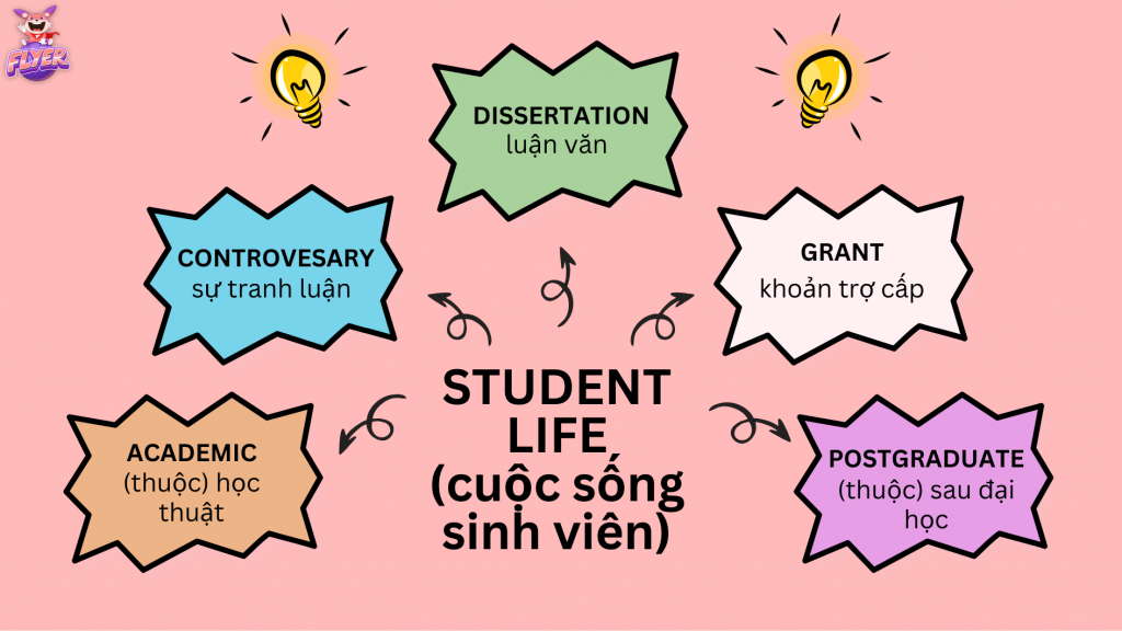 Vốn từ quyết định phần nhiều đến kết quả bài thi IELTS. Tuy vậy, phạm vi chủ đề xuất hiện nội dung thi khá rộng khiến việc “nạp từ” càng thêm thử thách. Để hỗ trợ các sĩ tử ôn luyện, FLYER tổng hợp danh sách 1000 từ vựng IELTS theo chủ đề (có ví dụ) và 50 thành ngữ/ cụm từ tiếng Anh có tính ứng dụng cao, đồng thời cung cấp một số bài tập giúp bạn nhớ từ tốt hơn. Cùng lưu lại và luyện tập ngay bạn nhé!
