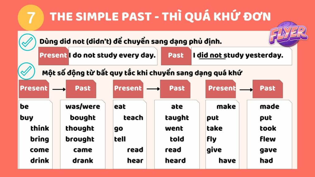 Cấu trúc đề bài thi TOEFL Primary Step 1 chủ yếu là dạng câu hỏi trắc nghiệm, chọn đáp án đúng nhất. Do vậy, việc nắm vững các chủ điểm ngữ pháp sẽ giúp con đọc hiểu và xác định câu trả lời nhanh và chính xác hơn. FLYER tổng hợp 12 chủ điểm ngữ pháp cơ bản nhất dành cho các bạn học sinh đang chuẩn bị cho bài thi TOEFL Primary Step 1 để giúp con hệ thống hóa kiến thức, vững bước hành trang cho kỳ thi quan trọng này..