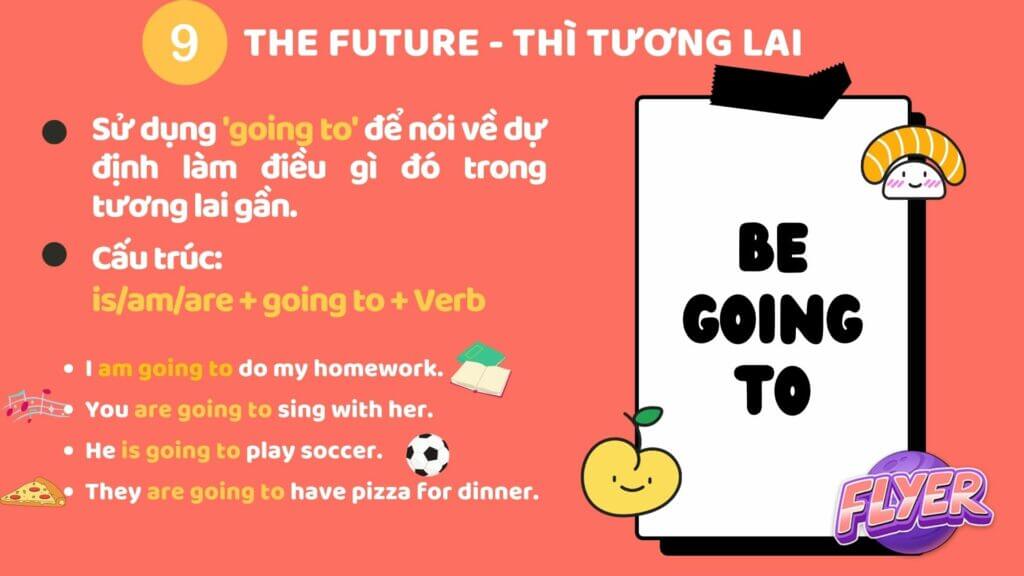 Cấu trúc “be going to” diễn tả dự định làm việc gì đó trong tương lai gần: