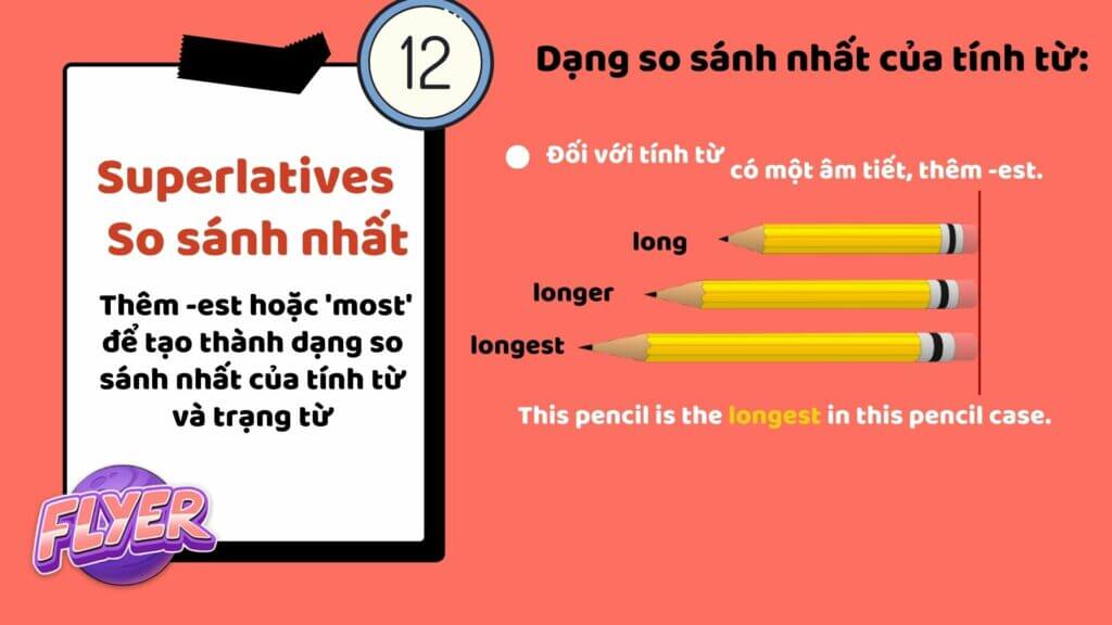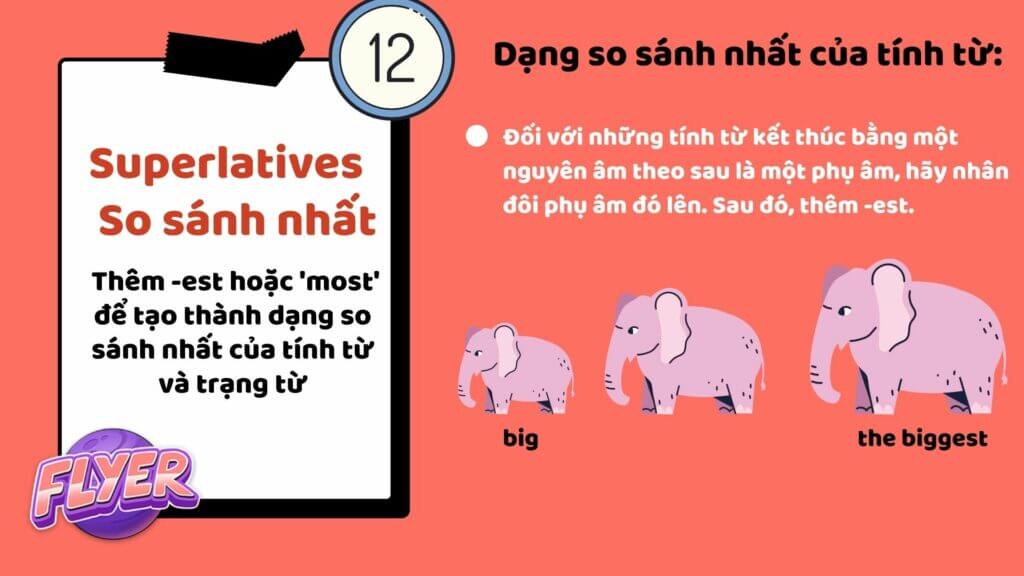 Khi so sánh nhất, tính từ/ trạng từ ngắn sẽ được thêm đuôi -est. Quy tắc thêm đuôi -est cũng giống như thêm đuôi -er khi so sánh hơn.