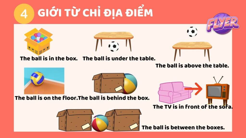 Giới từ chỉ địa điểm (Preposition of place) là những từ chỉ vị trí của vật hoặc người nào đó.