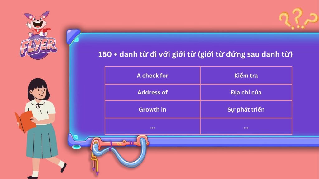 Thông thường, danh từ tiếng Anh có thể đứng độc lập, được sử dụng như một từ đơn trong câu. Nhưng để hoàn thiện hơn về nghĩa, một số danh từ buộc phải có thêm giới từ đi kèm đằng sau. Vậy, bạn có thể kể được bao nhiêu danh từ thuộc nhóm trên? Cùng FLYER khám phá thêm về các danh từ đi với giới từ thường gặp ngay trong bài viết sau đây nhé!