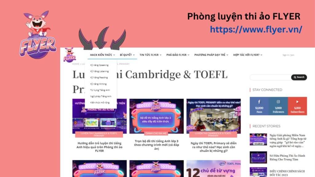Phòng luyện thi ảo FLYER với hệ thống kiến thức được biên soạn kỹ lưỡng và chi tiết cũng là một địa chỉ uy tín mà bạn có thể tham khảo để tra cứu ngữ pháp tiếng Anh