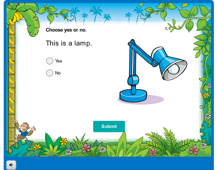 Các bé nghe audio và trả lời câu hỏi bằng cách chọn một trong 3 bức tranh cho sẵn.