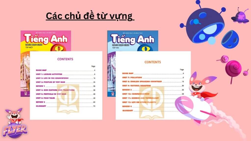 Dưới đây là nội dung cụ thể của 12 Unit, cũng là 12 chủ đề từ vựng mà bạn sẽ được học theo chương trình sách tiếng Anh 8 mới: