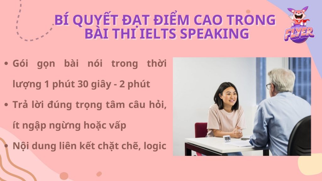 Song song với việc chỉ ra một số lầm tưởng của thí sinh, FLYER cũng sẽ “bật mí” cho bạn một số bí quyết để nâng band điểm IELTS Speaking một cách hiệu quả theo từng tiêu chí: