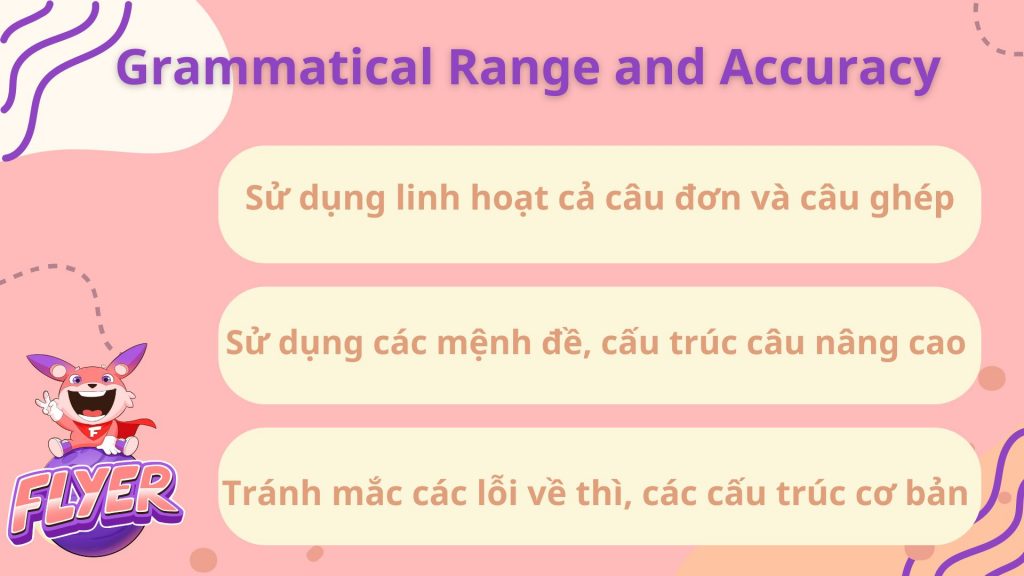 - Grammatical Range and Accuracy (Ngữ pháp đa dạng và chính xác)