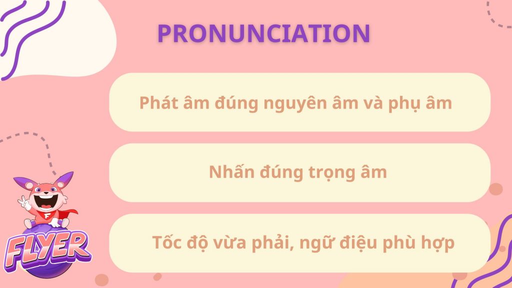 | Pronunciation | Phát âm chuẩn, lưu loát Kiểm soát được tốc độ khi nói |