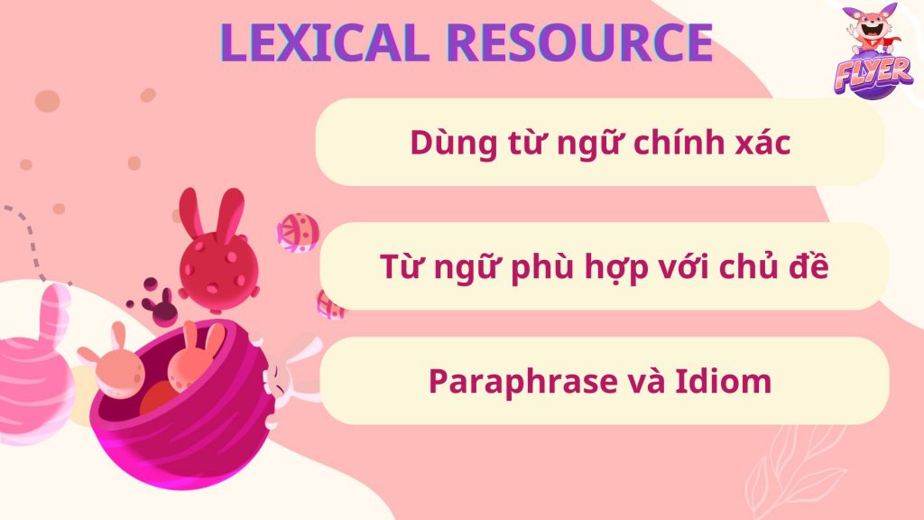Tiêu chí Lexical Resource trong bài thi IELTS Speaking sẽ được xét dựa trên 3 yếu tố: