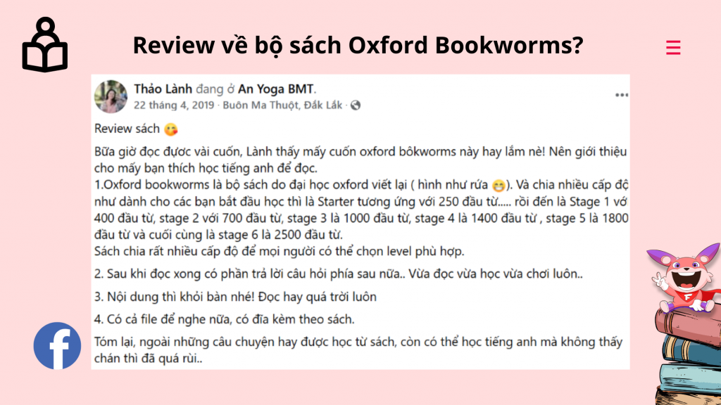 - Một độc giả trên Facebook nêu cảm nhận về Oxford Bookworms: