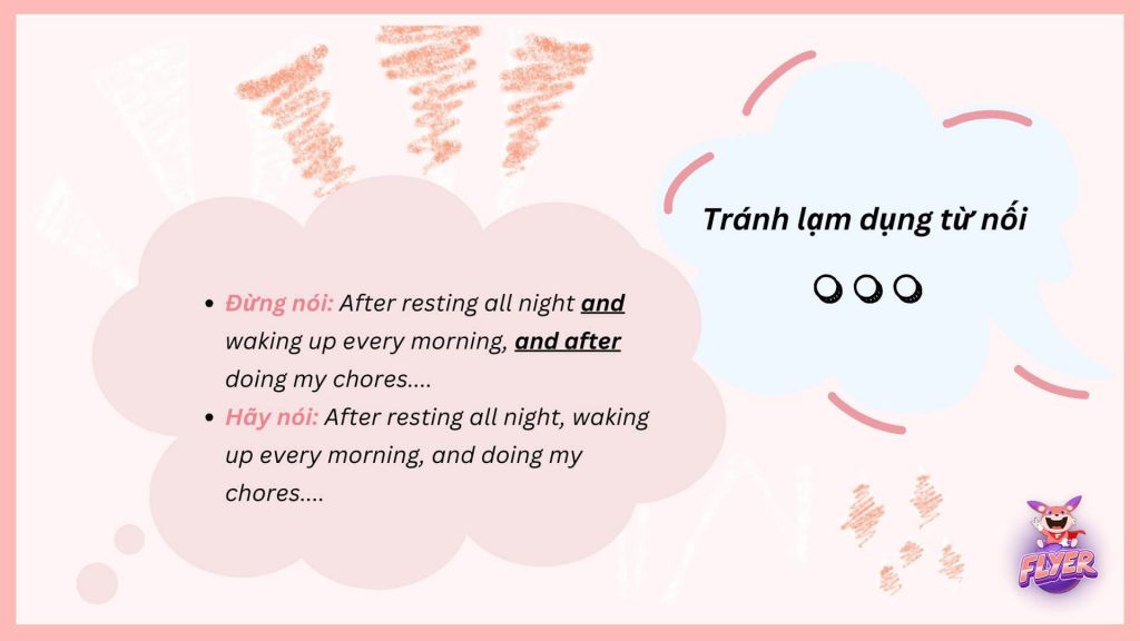 Mặc dù trong tiêu chí chấm điểm Speaking có đề cập đến việc sử dụng từ nối nhưng bạn chỉ nên dùng một cách vừa phải, ở những vị trí thực sự cần thiết. Sử dụng quá nhiều từ nối đôi khi có thể làm giảm sự mạch lạc của ý tưởng bạn muốn truyền đạt. Câu trả lời cũng sẽ vì thế mà trở nên cứng nhắc, thiếu tự nhiên.
