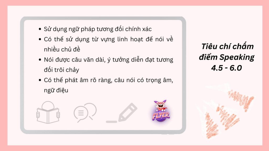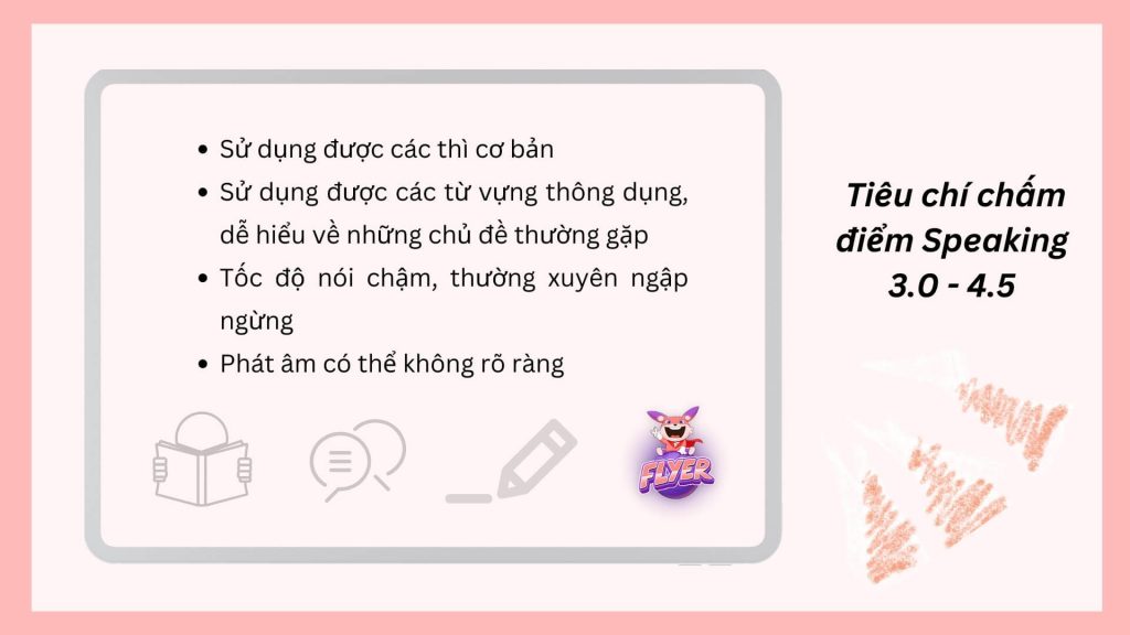 Dưới đây là tiêu chí chấm điểm cho band điểm IELTS Speaking 3.0 – 4.5:
