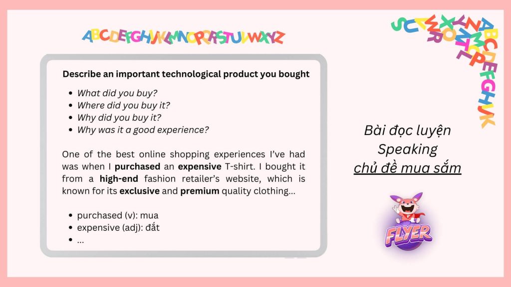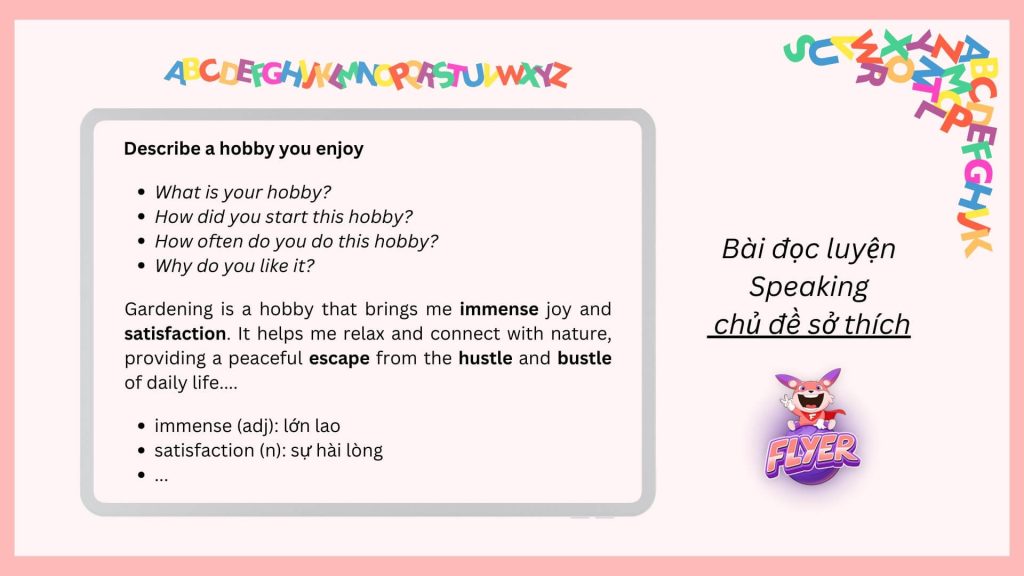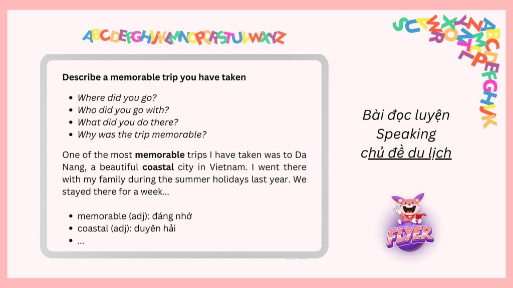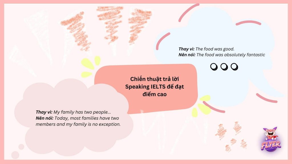 Bài thi Speaking luôn là một thách thức lớn đối với nhiều thí sinh. Để đạt được band điểm cao ở bài thi này, ngoài nắm chắc kiến thức ngữ pháp và từ vựng, luyện tập qua các bài đọc luyện Speaking, thí sinh còn cần có chiến thuật trả lời hiệu quả. Hãy cùng FLYER tham khảo và áp dụng một số chiến thuật trả lời dưới đây để có thể tạo ấn tượng tốt với giám khảo trong bài thi sắp tới nhé!