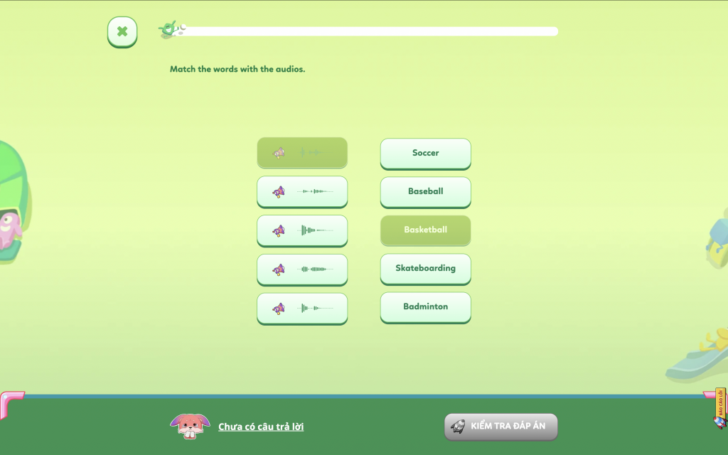 Tại đây, các bạn học sinh được ôn tập từ vựng theo các khung chương trình Cambridge với các cấp độ Starters, Movers, Flyers và TOEFL Primary. Không chỉ dừng lại ở dạng bài “Chọn đáp án đúng”, bạn học sinh trải nghiệm với những dạng bài mới như: Nghe điền từ, Nghe nối từ, Dịch nghĩa câu, Dịch nghĩa từ,… Với sự đa dạng về các loại bài, FLYER mong muốn các bạn học sinh ôn luyện từ vựng không bị nhàm chán và dễ dàng nhớ các từ mới hơn.