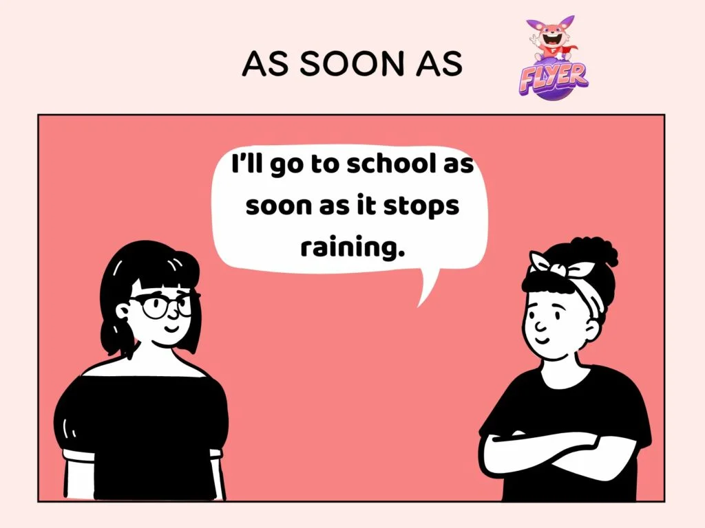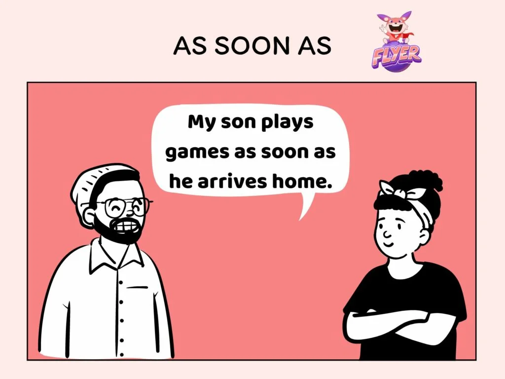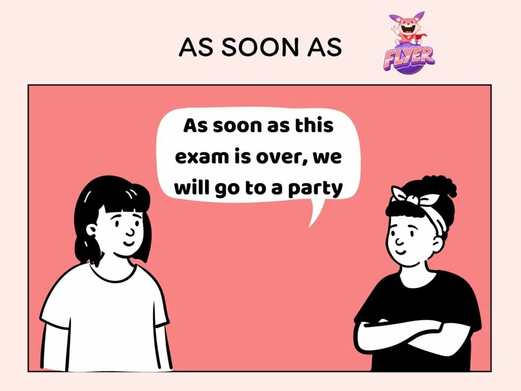 Trong giao tiếp hàng ngày hoặc trong văn viết, để các câu văn trở nên sinh động và có ý nghĩa rõ ràng hơn, các bạn có thể sử dụng cấu trúc “as soon as”. “As soon as” nếu được dùng linh hoạt sẽ khiến câu văn mượt mà tự nhiên hơn rất nhiều. Vậy cấu trúc này có cách dùng như thế nào? Chỉ mất 3 phút để hiểu được toàn bộ, hãy cùng FLYER tìm hiểu qua bài viết sau đây nhé.