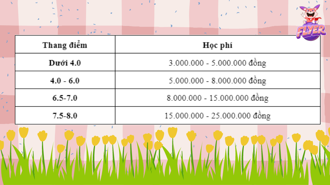 Lưu ý: Bảng học phí chỉ mang tính chất tương đối, được FLYER tổng hợp dựa vào mức học phí chung trên thị trường và không đại diện cho bất kỳ trung tâm nào.