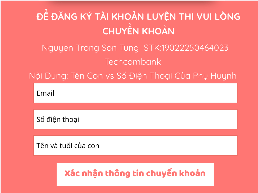 Tại màn hình thông tin chuyển khoản, bạn điền các thông tin như email, số điện thoại, tên và tuổi con và hoàn thành chuyển khoản với gói dịch vụ bạn lựa chọn. Sau khi hệ thống tiếp nhận thông tin, nhân viên Flyer.vn sẽ liên hệ với bạn qua số điện thoại hoặc email để xác nhận đơn hàng và chuyển mã kích hoạt cho bạn.