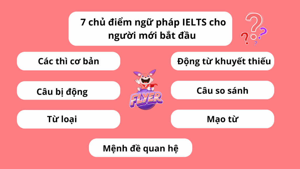 Một nền tảng ngữ pháp vững chắc không chỉ giúp bạn hiểu và sử dụng tiếng Anh hiệu quả, mà còn là yêu cầu cần thiết để bạn hoàn thành tốt cả 4 phần thi nghe, nói, đọc và viết trong kỳ thi IELTS. Sau đây, FLYER sẽ tổng hợp 7 chủ điểm ngữ pháp IELTS cho người mới bắt đầu trọng tâm mà siêu đơn giản, giúp bạn dễ dàng “chinh phục” những bước chân đầu tiên trên hành trình này. Hãy cùng khám phá qua bài viết dưới đây nhé!