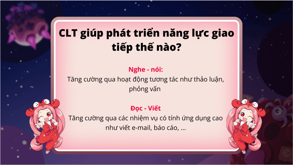 CLT giúp học sinh sử dụng ngôn ngữ để giao tiếp một cách thực thụ thay vì chỉ học lý thuyết.