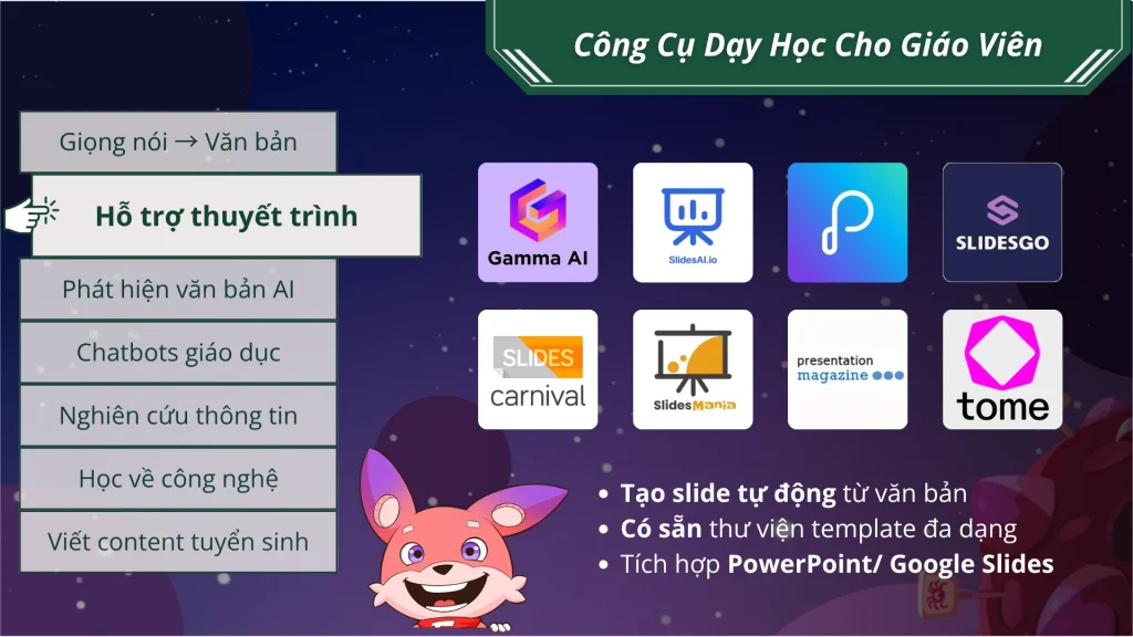 3. Công cụ hỗ trợ thuyết trình cho giáo viên và học sinh