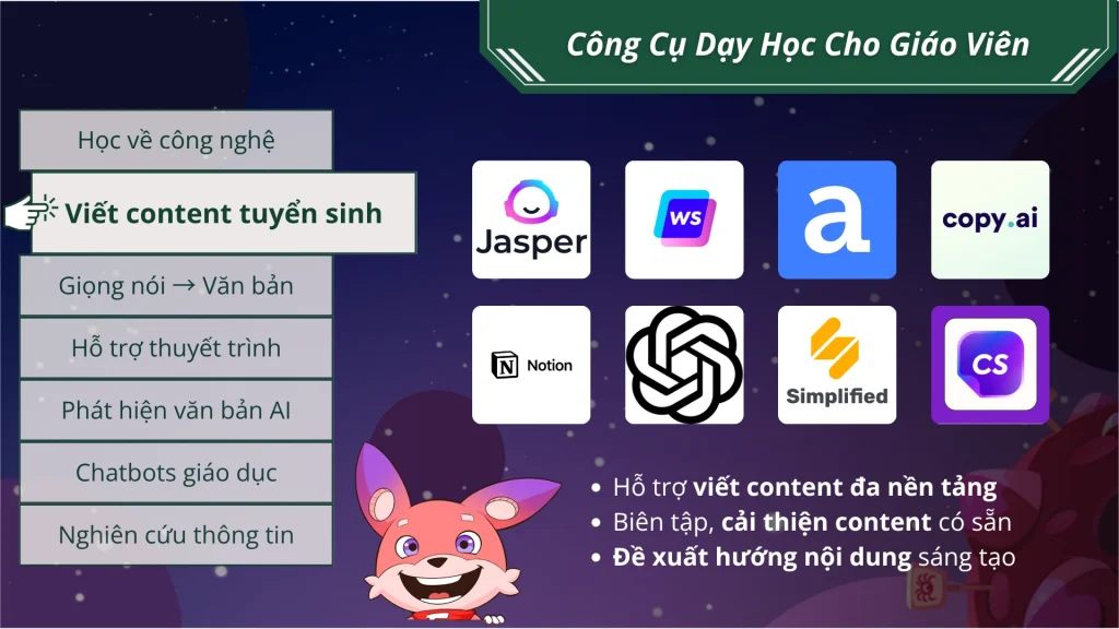 1. Công cụ day học: Hỗ trợ viết content tuyển sinh
