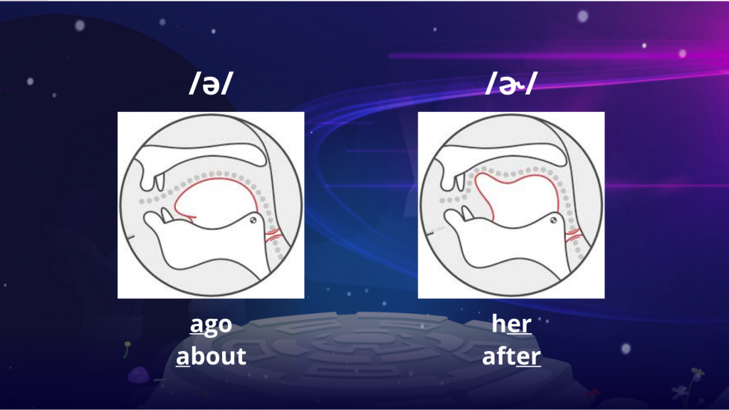 - Lưu ý về sự khác nhau giữa /ɚ/ (có cong lưỡi) và /ə/ (không cong lưỡi).