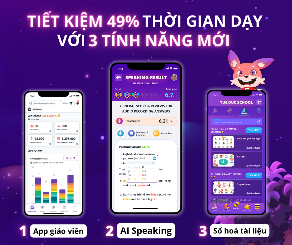 Song song, đội ngũ sáng tạo FLYER cũng phát triển công cụ giúp thầy cô tiết kiệm thời gian chấm chữa, giao bài tập. Đặc biệt, FLYER hướng tới việc nâng cấp các tính năng dành cho trung tâm, đảm bảo tự động hoá các quy trình vận hành và quản lý.