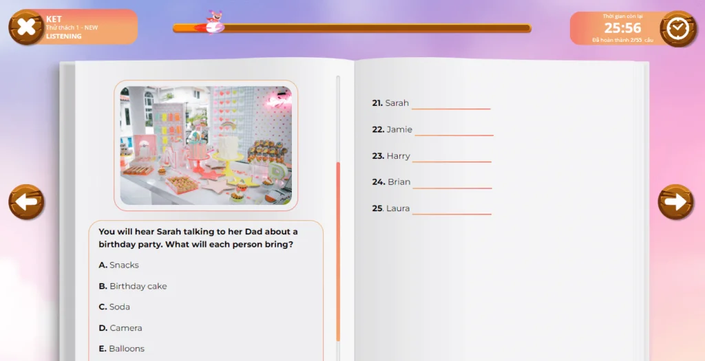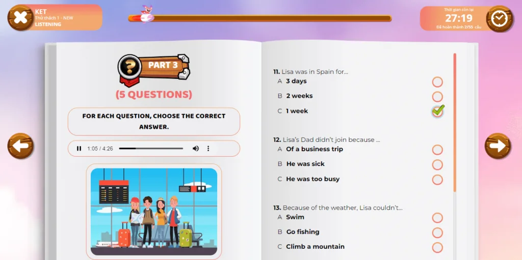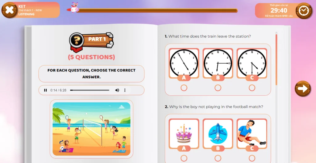 b. Đề thi thử KET hình thức thi trên máy tính:
