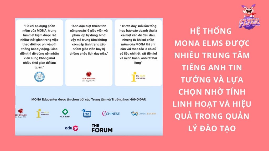 Với mức giá hợp lý, FLYER School giúp các đơn vị đào tạo tiết kiệm ngân sách mà vẫn đảm bảo hiệu quả ôn luyện IELTS cho học viên.