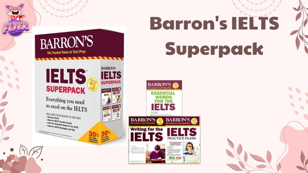 “Barron’s IELTS Superpack” bao gồm nhiều tài liệu khác nhau như sách luyện tập, đĩa CD, và sách từ vựng…, giúp học sinh có cái nhìn toàn diện và đầy đủ nhất cho kỳ thi IELTS. Bộ sách cung cấp một lượng lớn bài tập thực hành, từ các bài thi mẫu cho đến các bài tập phát triển kỹ năng riêng lẻ như nghe, nói, đọc và viết.