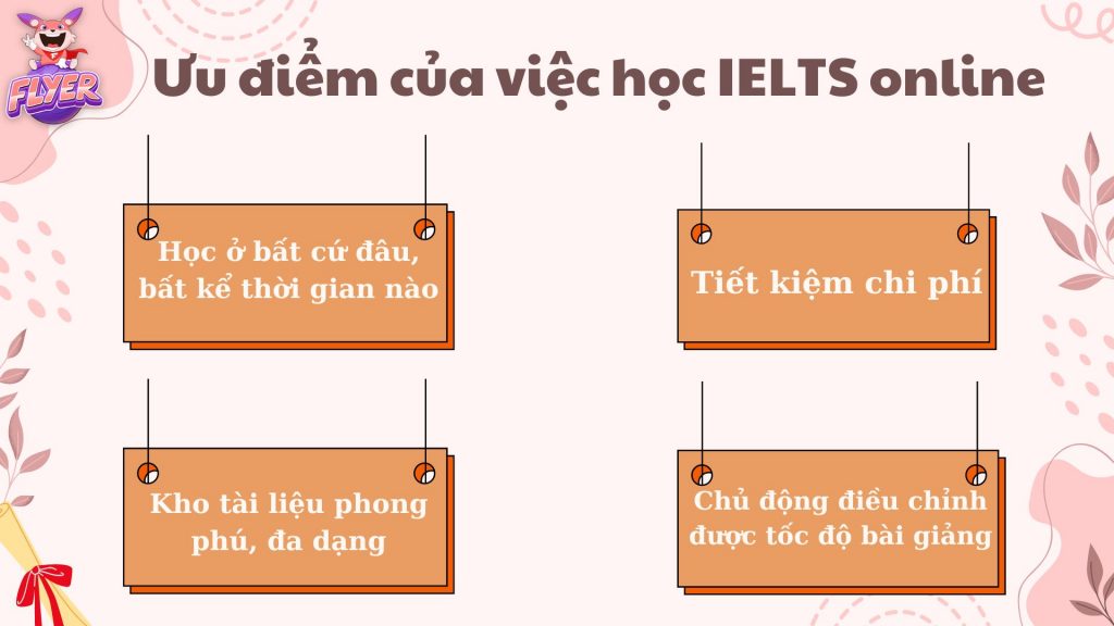Trong bối cảnh công nghệ số phát triển mạnh mẽ, việc học IELTS online đang trở thành lựa chọn phổ biến của nhiều người, đặc biệt là sau đại dịch COVID-19. Nhưng liệu học IELTS online có hiệu quả không? Trong bài viết dưới đây, FLYER sẽ cùng bạn khám phá sâu hơn về tính hiệu quả của việc học IELTS trực tuyến, đồng thời giới thiệu các tài liệu và phương pháp học tối ưu nhất giúp bạn đạt được band điểm như mong muốn. Cùng FLYER tìm hiểu để biết cách tận dụng tối đa những lợi ích mà học trực tuyến mang lại cho hành trình chinh phục IELTS của bạn nhé.
