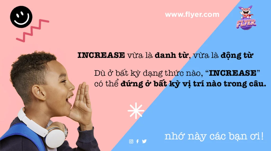 Lưu ý: Dù ở bất kỳ dạng thức nào, “increase” có thể đứng ở bất kỳ vị trí nào trong câu.