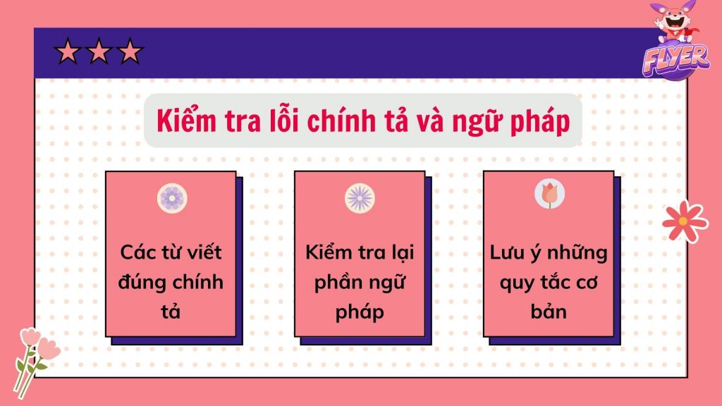 - Đảm bảo tất cả các từ được viết đúng chính tả, đặc biệt là những từ dễ mắc lỗi sai như số nhiều, từ có âm tương tự nhưng khác nghĩa (homophones),…