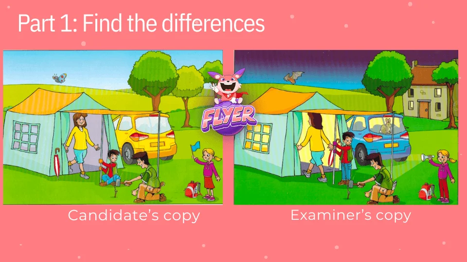 Bức tranh của thí sinh và bức tranh của giám khảo trong phần 1 bài thi Speaking Flyers Cambridge