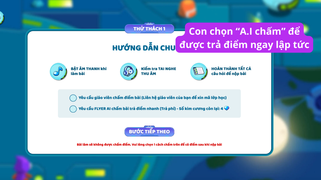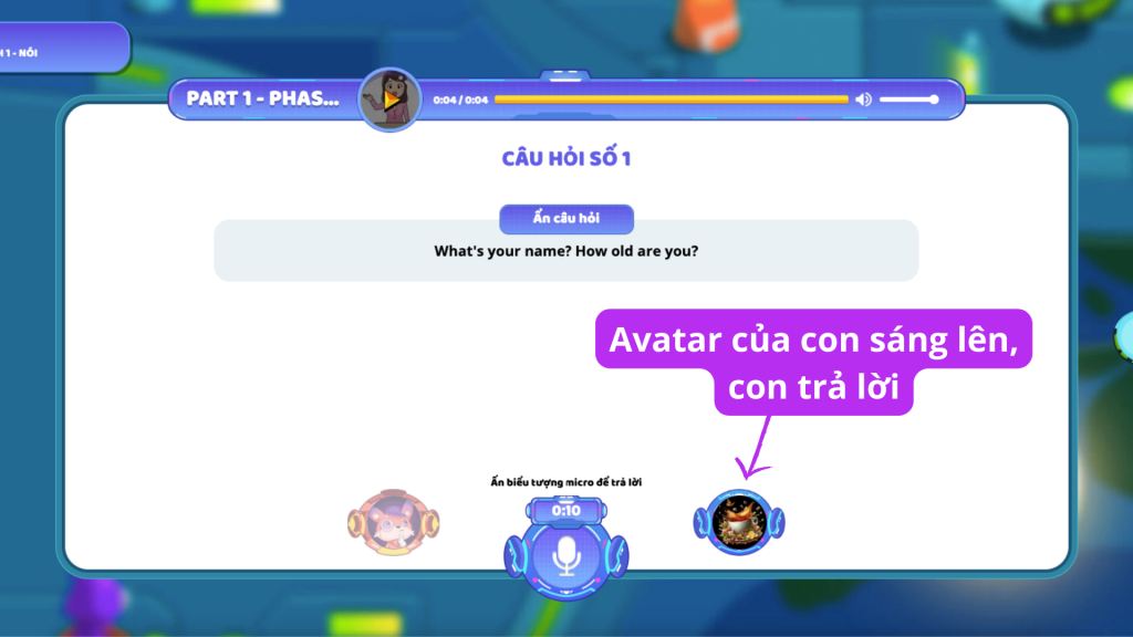 Lưu ý: Con chỉ được ghi âm câu trả lời một lần/ một câu hỏi