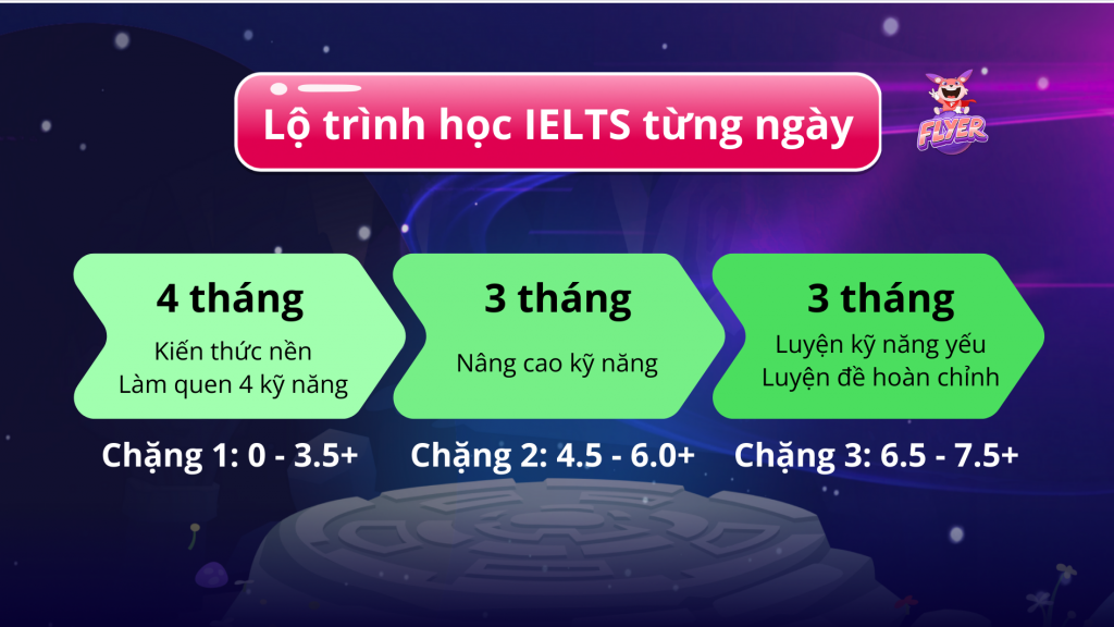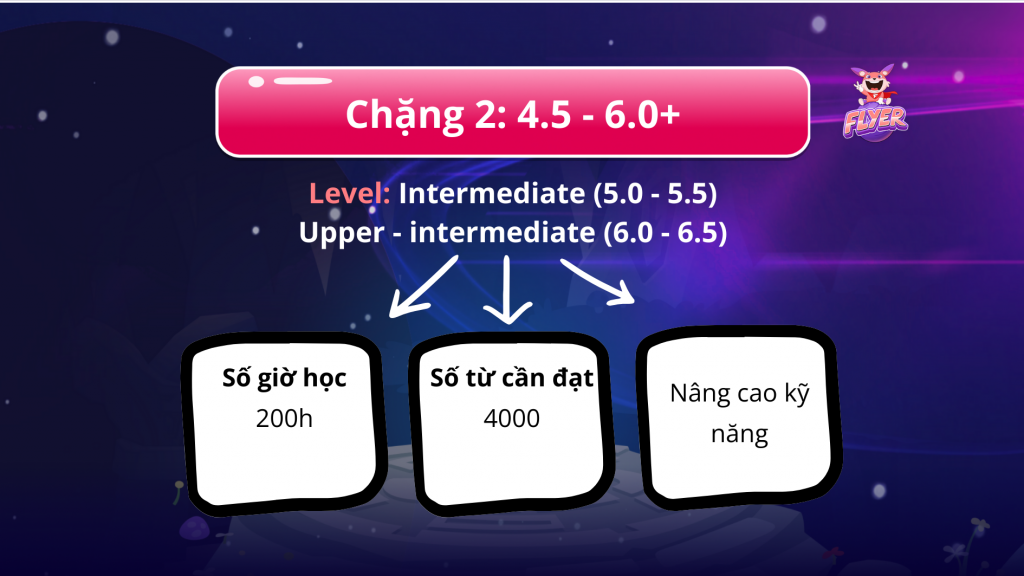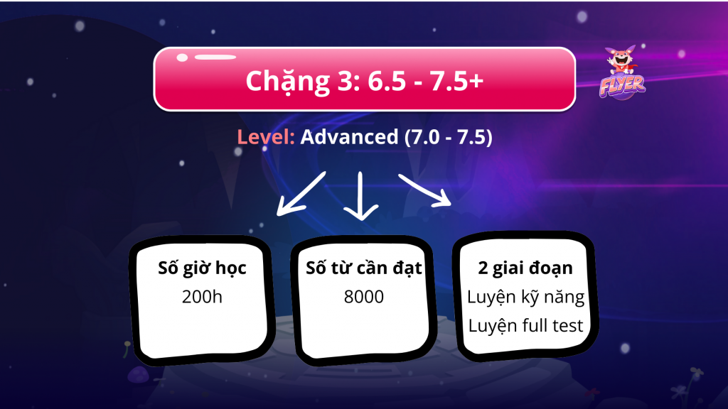 Chặng cuối cùng của lộ trình học IELTS từng ngày từ 0 – 7.5+, FLYER chia thành 2 giai đoạn nhỏ: