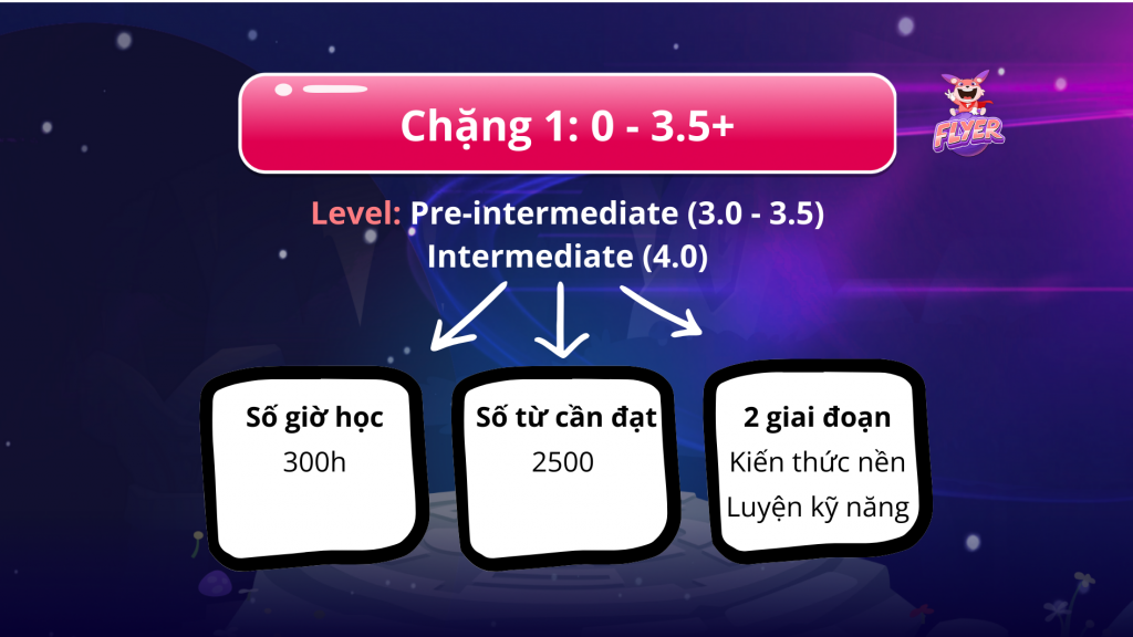 FLYER chia chặng 1 thành 2 giai đoạn nhỏ: Xây dựng kiến thức nền và luyện kỹ năng.