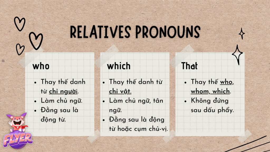 Đến đây, có lẽ vài bạn sẽ thắc mắc về cách dùng các đại từ quan hệ và trạng từ quan hệ phải không? Khi nào thì dùng Who? Khi nào thì dùng Which? FLYER sẽ giải đáp ngay ở 2 phần tiếp theo!