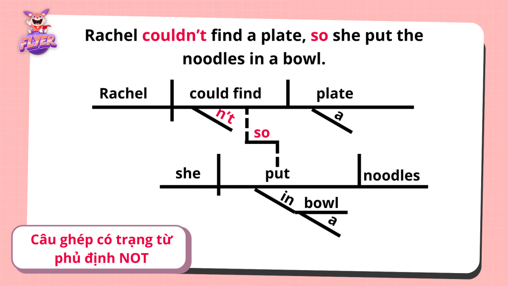 Câu trên xuất hiện trạng từ phủ định “n’t” (not) để phủ định cho “could”. Do đó, “not” sẽ nằm ở đường chéo ngay dưới động từ “could”.
