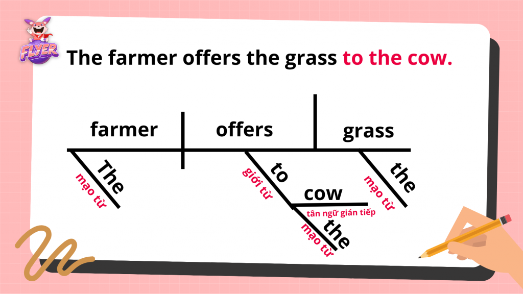 | Bên phải đường kẻ sọc vừa vẽ, viết vào tân ngữ trực tiếp “grass”. |