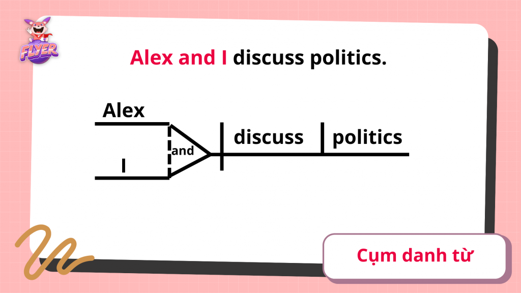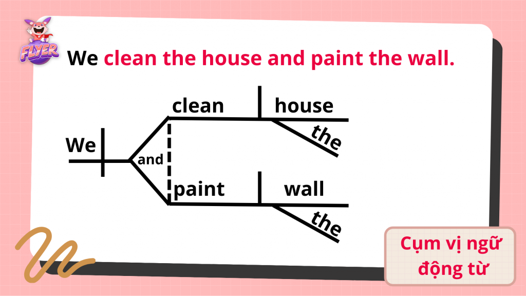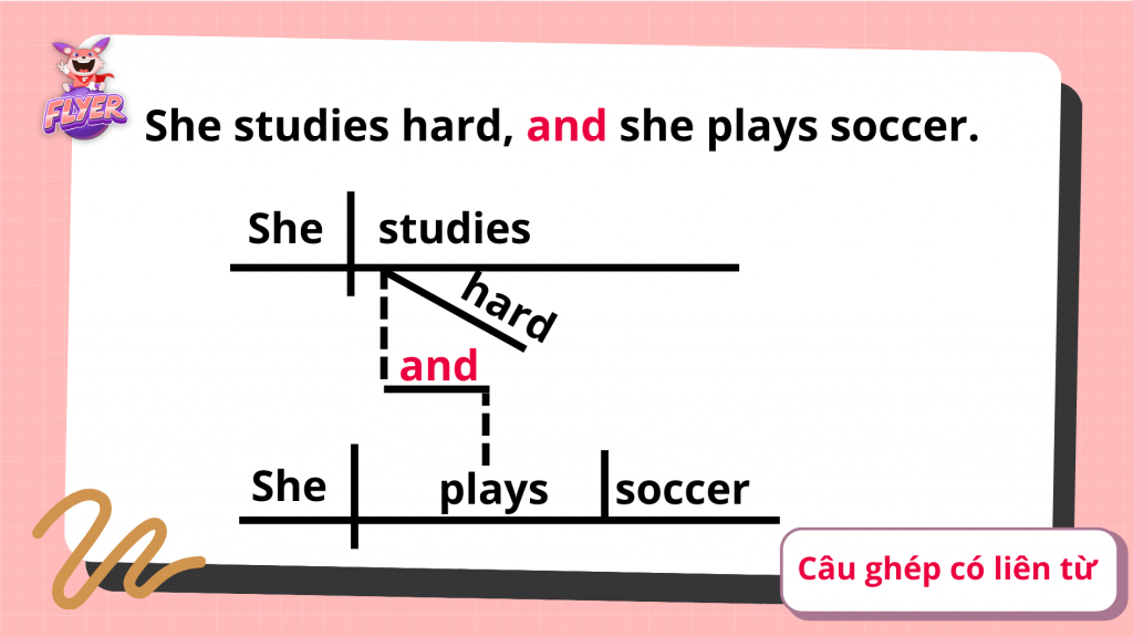 Câu trên có thêm liên từ “and” để nối hai mệnh đề với nhau. Học sinh cần sử dụng nét đứt để thể hiện mối liên kết giữa hai mệnh đề thông qua liên từ “and”.