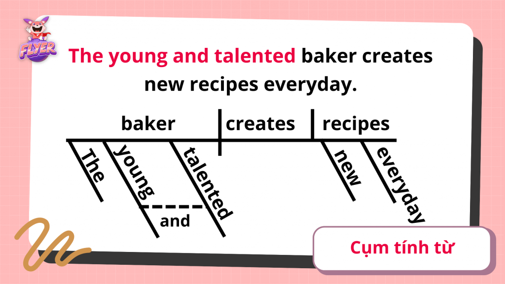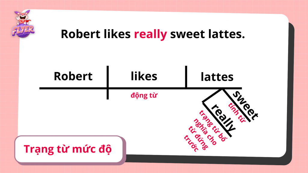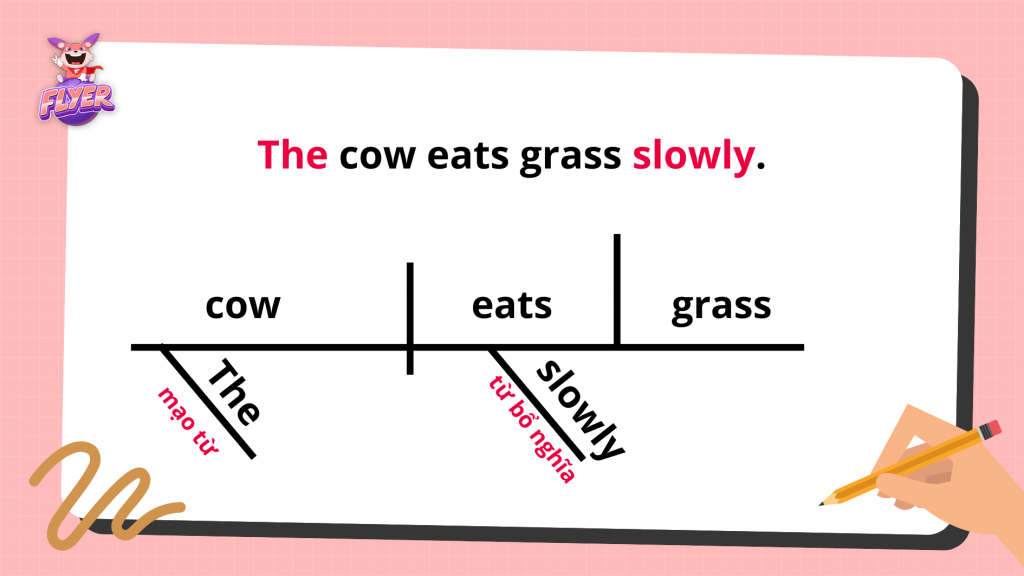 Từ bổ nghĩa (tính từ, trạng từ,…) đứng trên một đường chéo bên dưới từ mà nó bổ nghĩa.
