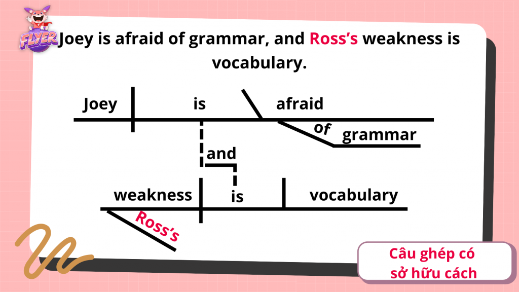 Thành phần học sinh cần chú ý trong câu trên là liên từ “and” và tính từ sở hữu “Ross’s”. Chủ ngữ danh từ trong vế hai của câu này là “weakness” và “Ross’s” đóng vai trò xác định cho chủ ngữ danh từ.