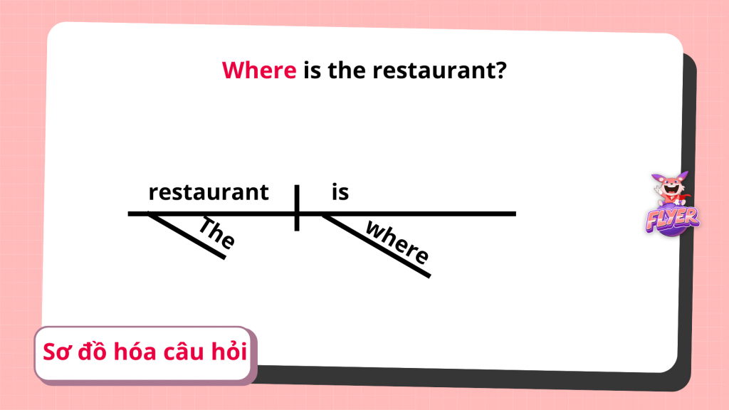 “Where” đang đóng vai trò như một trạng từ chỉ nơi chốn bổ nghĩa cho động từ “is”. Do vậy, “where” nằm trên đường chéo ngay bên dưới từ mà nó bổ nghĩa.