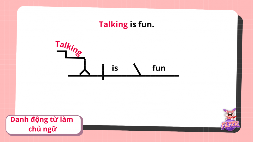 Thoạt tiên khi nhìn vào câu này, học sinh sẽ ngay lập tức đặt “Talking” vào vị trí của chủ ngữ danh từ: đó là ở bên trên đường cơ sở và ở bên trái đường kẻ dọc qua trục ngang chính.