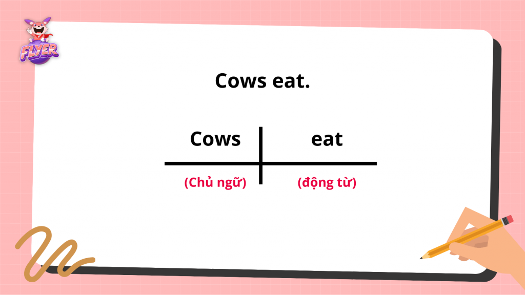Trước tiên, thầy cô đặt một câu tiếng Anh cơ bản gồm một chủ ngữ là danh từ và một động từ chính.