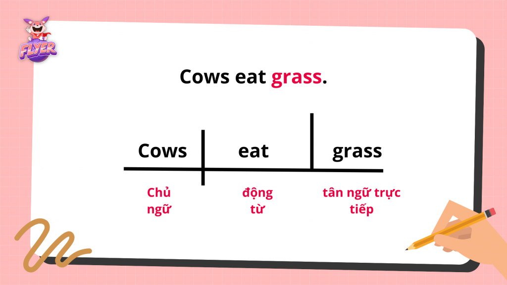 Trong câu này, “grass” là danh từ trực tiếp nhận hành động, tức là tân ngữ trực tiếp.