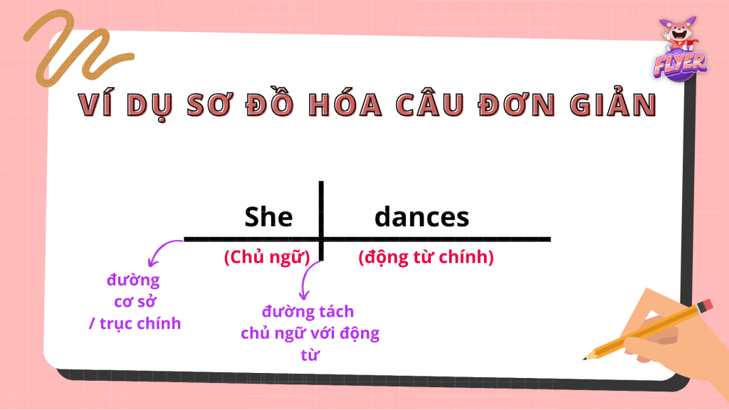 | Đường kẻ ngang (đường cơ sở/ trục chính) | Chứa những thành phần chủ chốt như danh từ chủ ngữ, vị từ động ngữ và tân ngữ trực tiếp. |