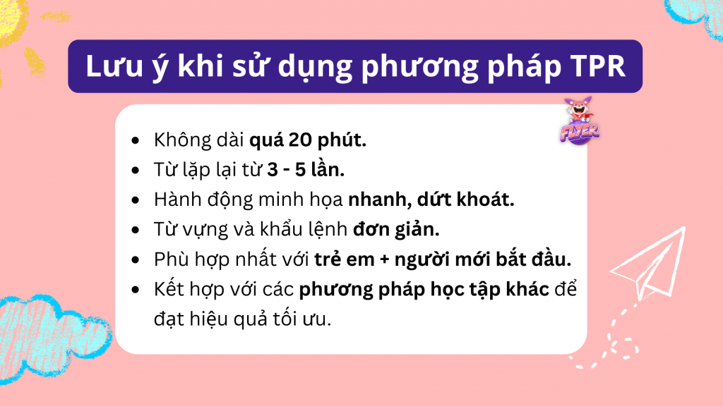 Bởi những điểm hạn chế FLYER đã điểm bên trên, thầy cô cần chọn thời điểm và lọc nội dung để phương pháp TPR phát huy công dụng. TPR hoạt động tốt nhất khi: